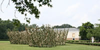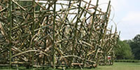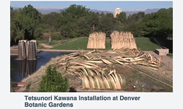 川名グループ作品のプリペアレーションから作品化までの写真を載せますのでご覧下さい。今回の川名グループは、大阪、滋賀、富山、長野、外国は香港、オーストラリア、アメリカはシアトル、サンフランシスコから総勢26名が集結し、作品タイトル“蒼風オマージュ”の制作に望みました。蒼風家元が6脚の金屏風に描かれた椿、それを 3D 化しました。先ず屏風はベニヤ材パネルを使用、それに赤金の上に白金と重ね塗りをし、そのコンパネに火を入れ、エッチング方法で椿のスケッチを入れていきました。それに本物の椿,藤蔓を重ね3Dに!!多くの反響を呼びました。